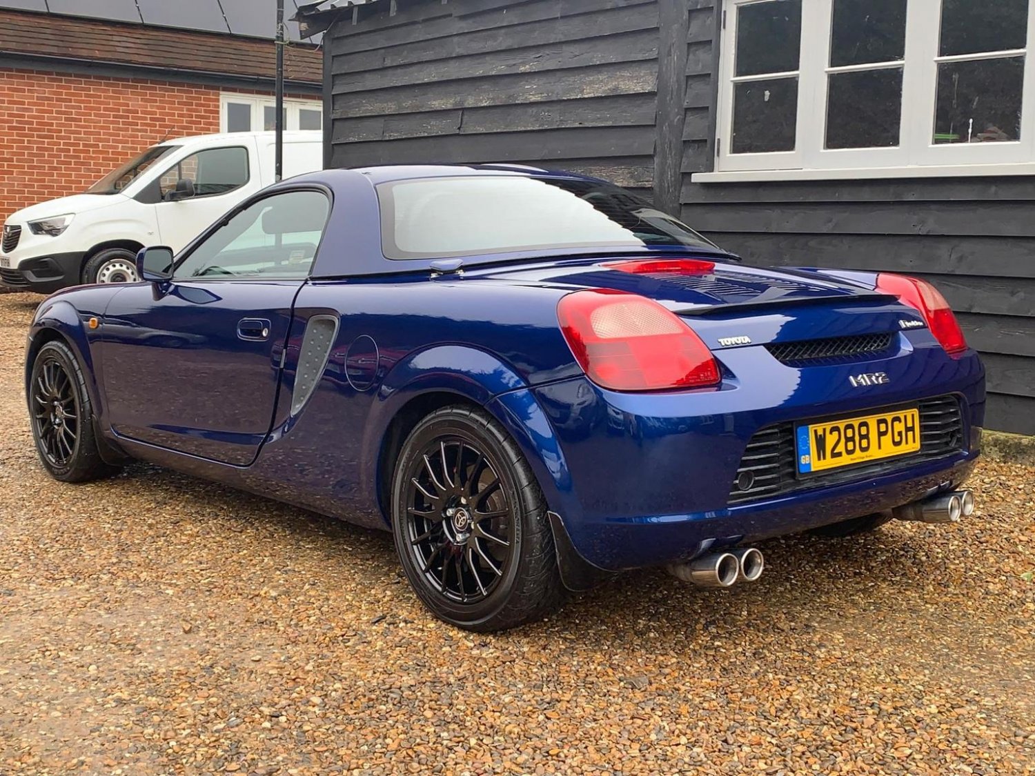 2000 W TOYOTA MR2 FINISHED IN BLUE SPECTRA METALLIC WITH BLACK LEATHER. Comes with factory hard top including storage stand, air con, BC Racing adjustable coil over suspension, K&N air filter. Last serviced at 140,188 miles. Very clean car ready for the summer.